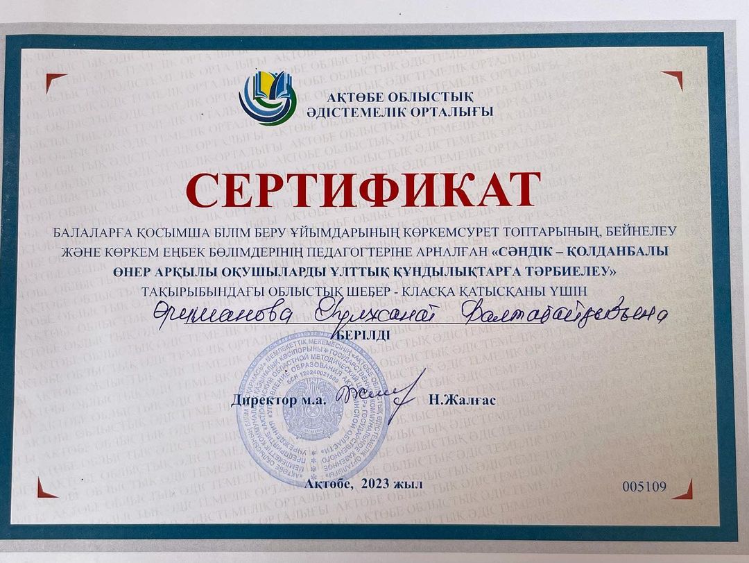 Ұмыт болған халқымыздың қолөнерін жандандыру, оқушыларды шыдамдылыққа, ісмерлікке, ұқыптылыққа тәрбиелеу, демалыс уақытын тиімді пайдалану мақсатында "Қазақтың ұлттық қолөнері - ши тоқу өнері" тақырыбында "Шебер қолдар" үйірмесінің жетекшісі Р.Былшымбаева қыз ба...