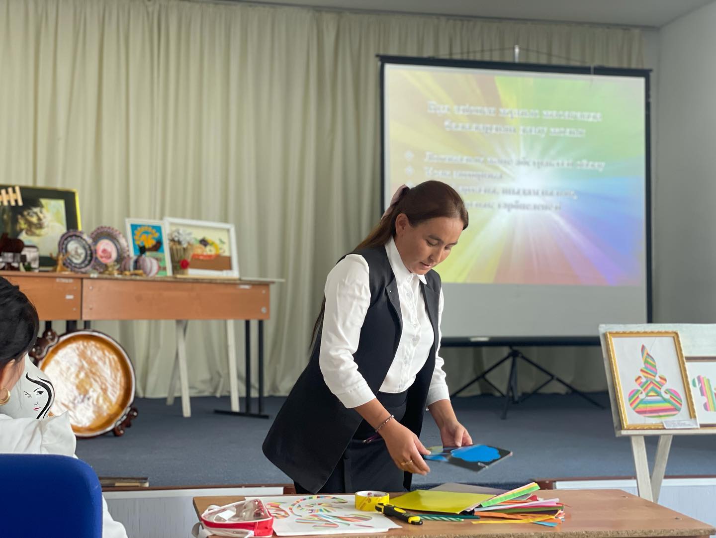 Қосымша білім беру ұйымдарының пәндік секциялық отырысында орталық педагогтары "Оригами" үйірмесінің жетекшісі О.Сатыбалдина "Қағазды бүктеу техникасы" /айрис-фолдинг/ , "Ағаш шебері" үйірмесінің жетекшісі М.Дүзбаев "Ас үй жабдығын жасау", "Дизайн" үйірмесінің жетекшісі Г.Серікқызы "Декоративті тарелканы безендіру" тақырыптарындағы сабақтарымен бөлісті.