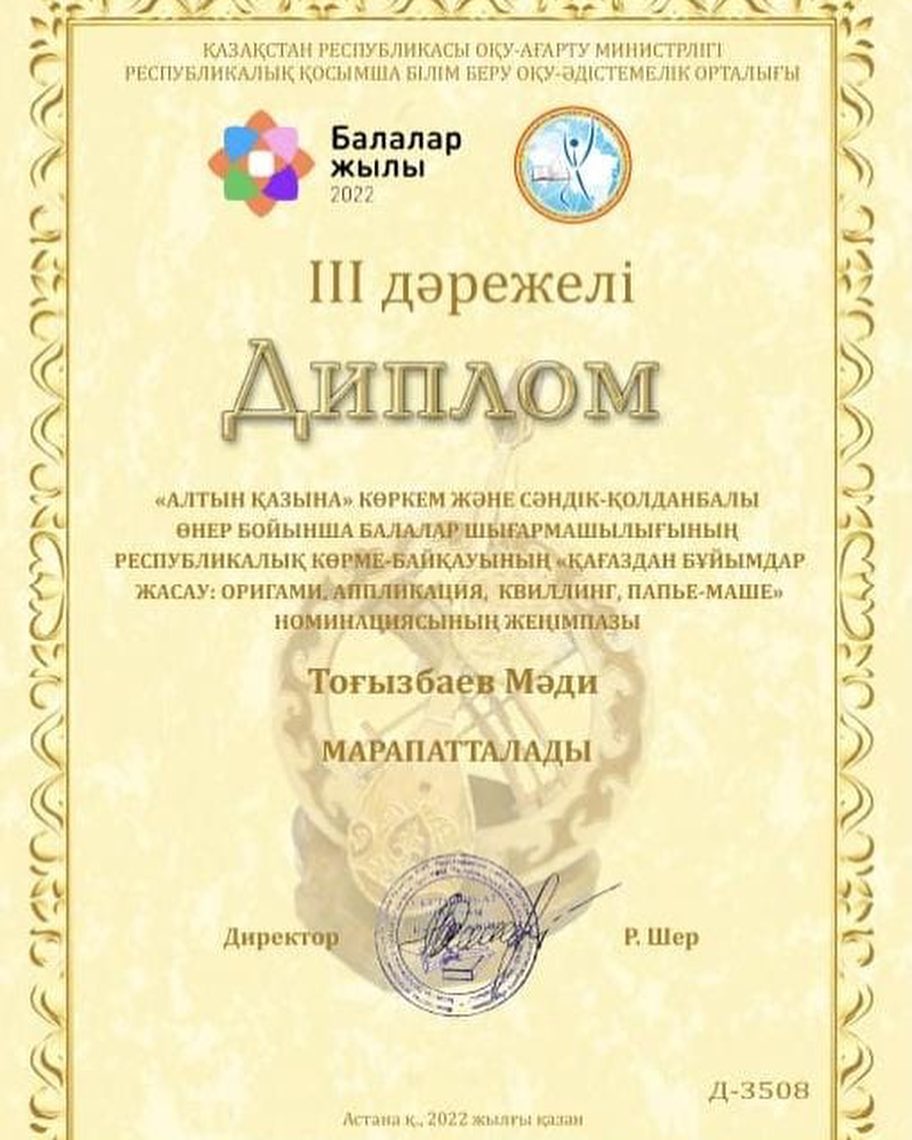 🔹Жүлделі ІІІ орын алған "Жас талап" үйірмесінің оқушысы Тоғызбай Мәдиді және үйірме жетекшісі Кызылова Гүлнара Ыбрайкызын құттықтаймыз!!!