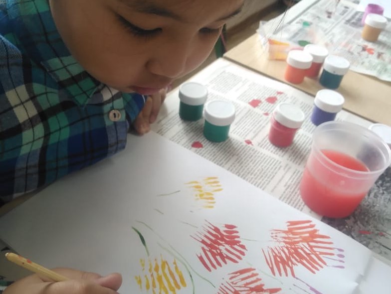 "Бисермен теру" үйірмесінің мүшелері, сабақ барысы. Дәстүрлі емес техникада сурет салу
