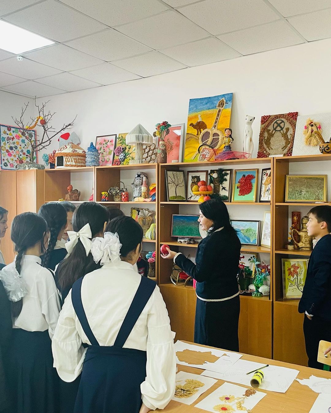 🔹Қарауылкелді орта мектебінің 7 "б" сынып оқушылары, жетекшілері Б. Тапанова мен А.Екібайқызы шығармашылық әлеміне саяхат жасады. Оқушылар үйірме мүшелерінің шығармашылық туындыларымен танысып, қызыға тамашалап, орталық ұжымына ризашылықтарын білдірді.