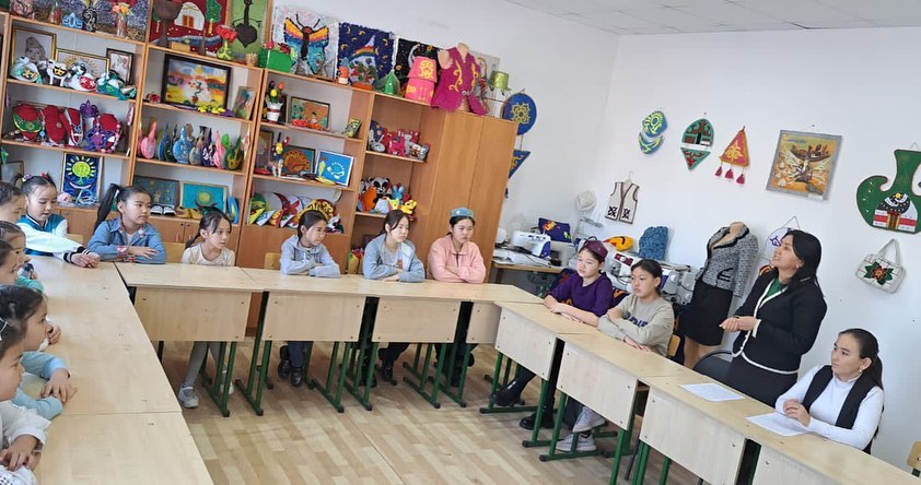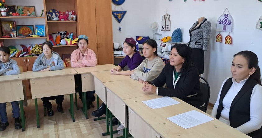 "Қолөнер" үйірмесі мүшелерінің арасында қыз балалар тәрбиесін, қыз бала - әдептіліктің, әдеміліктің, сұлулықтың жаршысы екенін сөз ету, еңбекке баулу, екі топ арасындағы өзара сыйластықты, достық қарым – қатынасты қалыптастыру, нығайту мақсатында "Қыз қылығымен тәтті" атты танымдық сағат өткізілді.