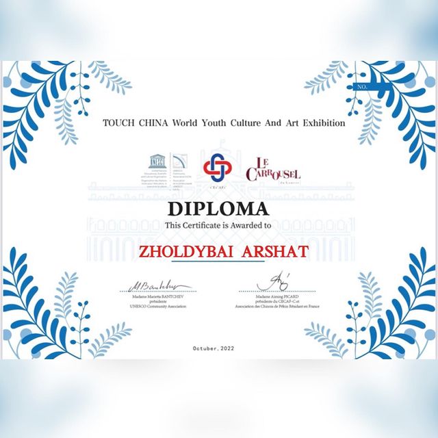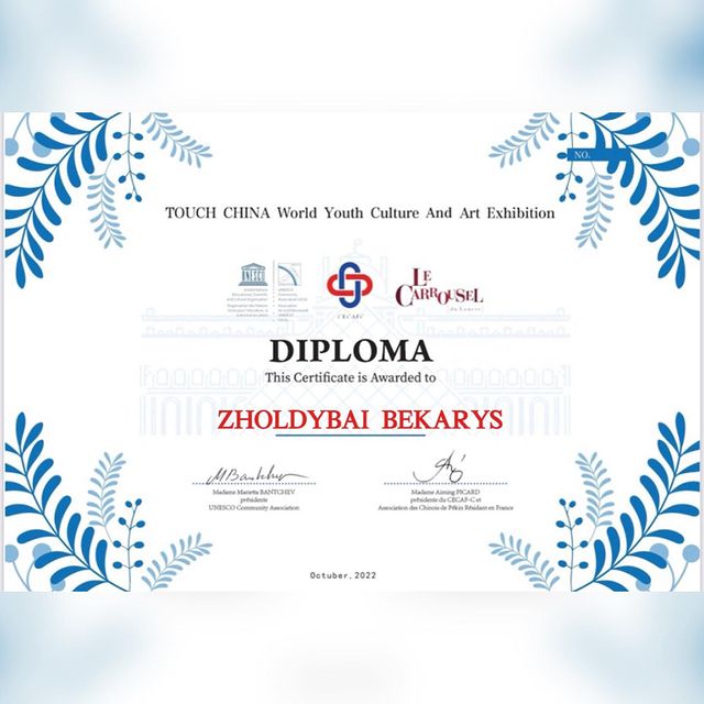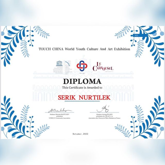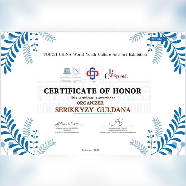 Қазақстан Суретшілер Одағының мүшесі, кескіндемеші,атақты суретші Қазақстан балалар көрмесінің кураторы Болат Хамзин жетекшілік еткен, балалар шығармашылығын шетелдерде насихаттау мақсатында, әлемдік деңгейде өткен, Париждегі Лувр музейінде «Бүкіл әлемде – бейбітшілік» ұранымен «Ұлы Жібек жолы» көшпелі көрмесінде Орталығымыздың "Дизайн" үйірмесінің жетекшісі ГҮЛДАНА СЕРІКҚЫЗЫМЕН үйірме мүшелері: