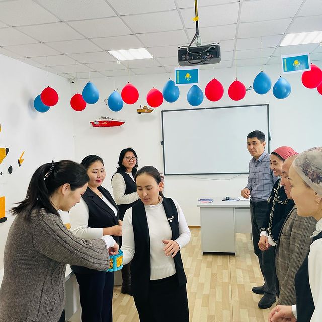 "Оригами" үйірмесінің жетекшісі О.Сатыбалдина педагогтардың арасында "Өзіме, көршіме" атты сұрақтарға шынайы жауап алу арқылы қандай ойда, пікірде екенін, шындықты айта білуге, ойын еркін жеткізе алуға, көпшілік орында еркін сөйлеуге, пікір алмасуға үйрету мақсатында тренинг өткізді.