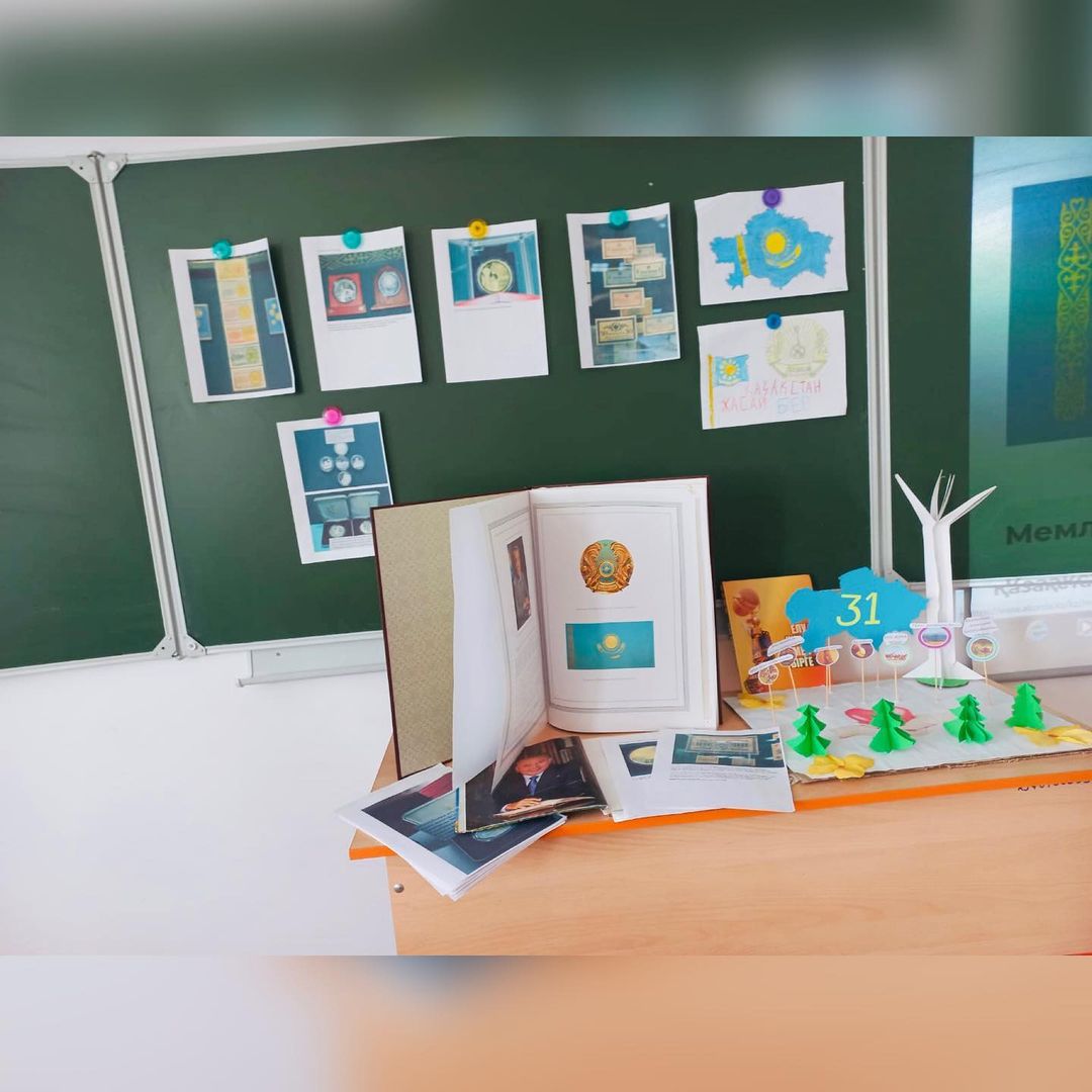 ҚР Мемлекеттік рәміздерін қолдану және насихаттау іс-шараларының жоспарына сәйкес, "Шебер қолдар" үйірмесінің жетекшісі Р.Былшымбаева оқушыларын Отансүйгіштікке тәрбиелеумен рәміздерді құрметтеу мақсатында "Тарихымыздағы үш нышан белгісі" тақырыбында танымдық сағат өткізді.