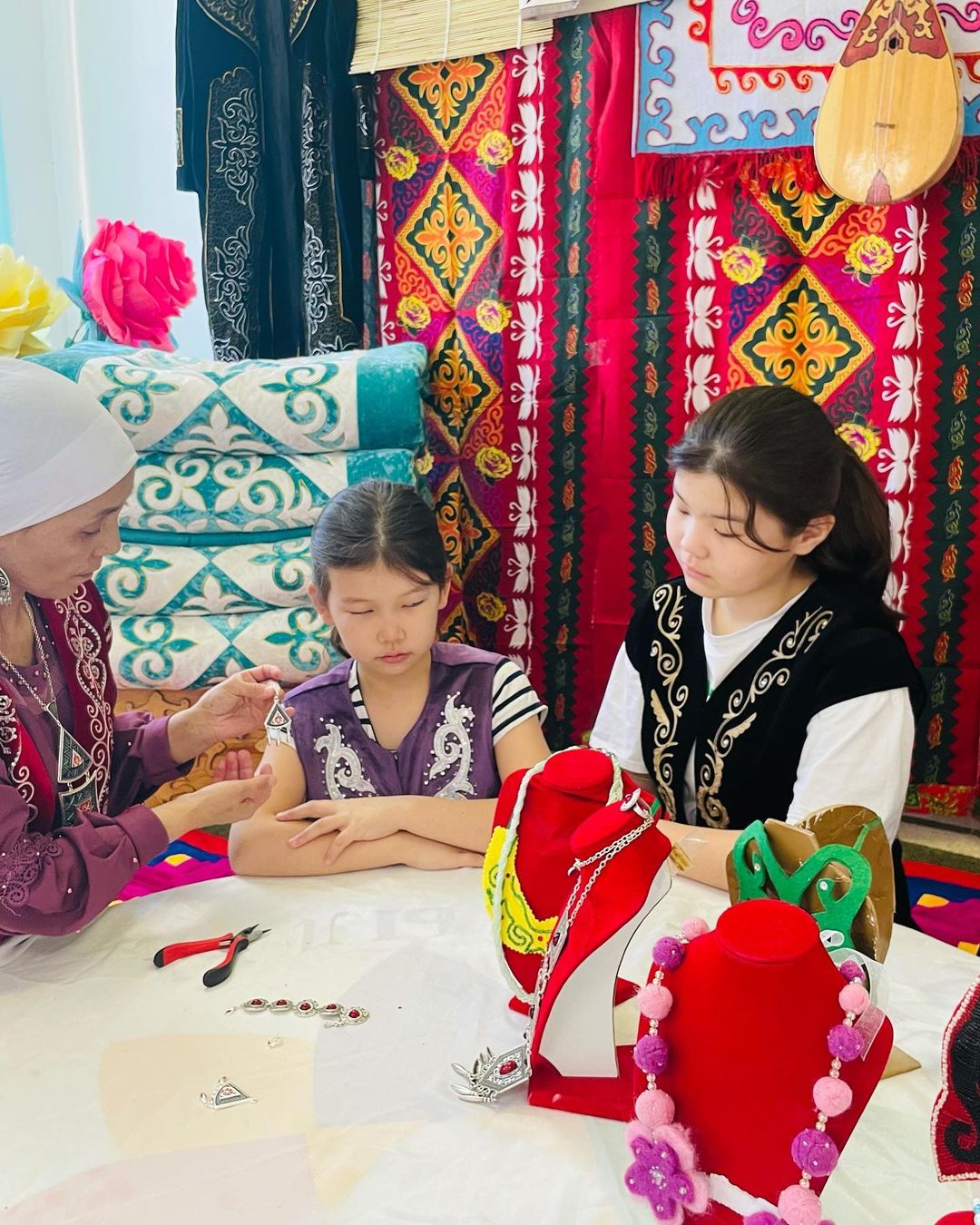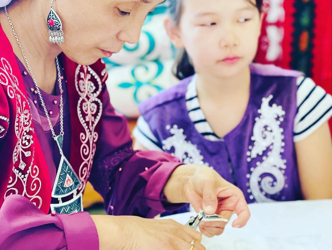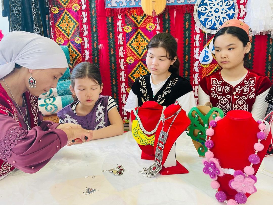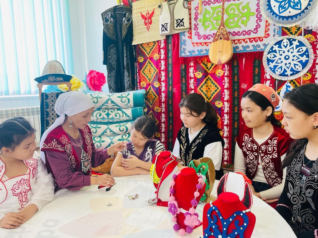 "Қолөнер" үйірмесінің қыз балаларымен әріптес қыз-келіншектердің арасында ұлттық әшекейлердің қыр-сыры туралы әңгіме өрбіп, ұлттық бұйымдарды насихаттау мақсатында тәлім сағаты өткізілді.